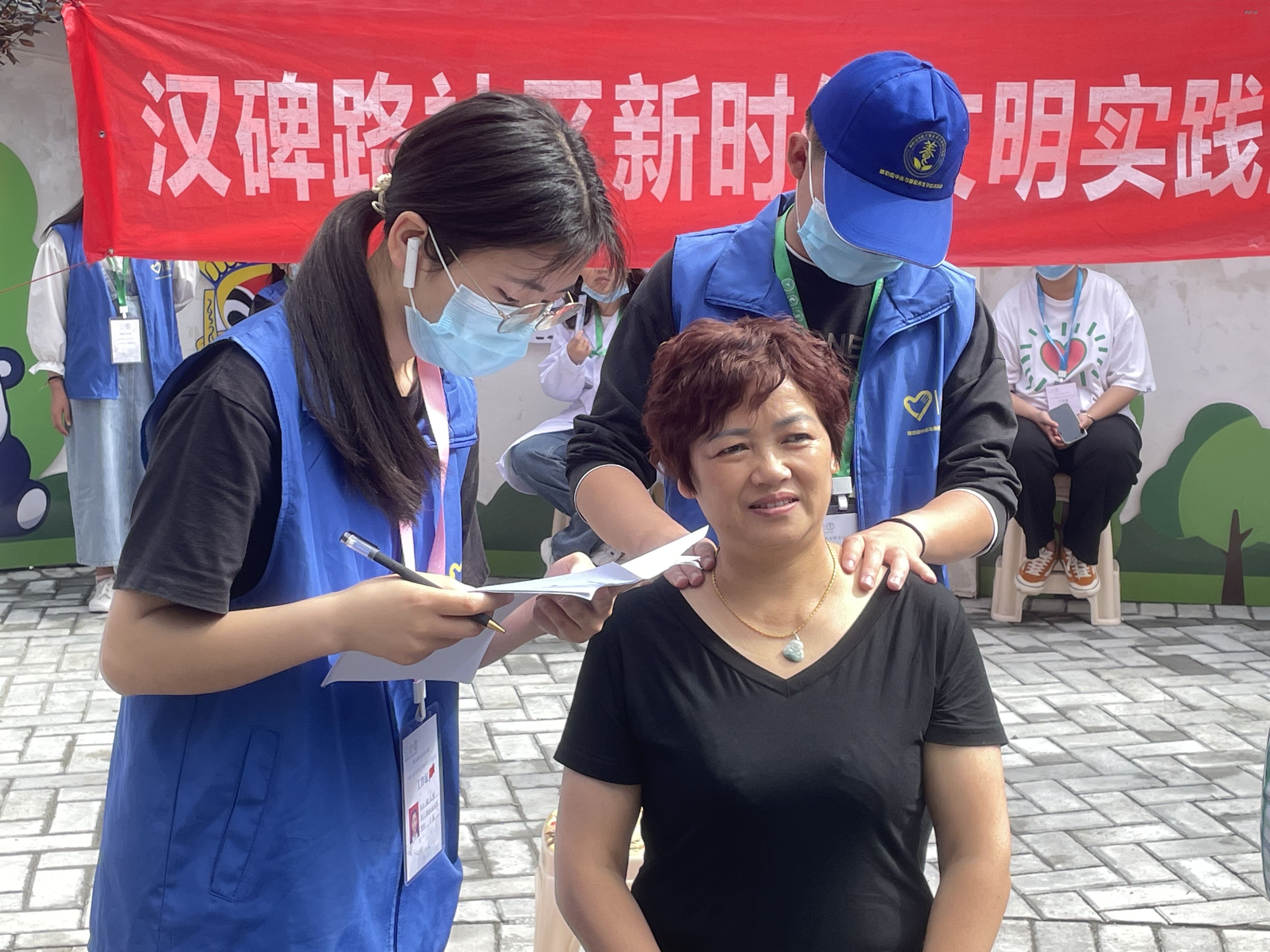 520日上午,太阳集团tyc151直属党支部与太阳集团tyc151康养学院直属党支部、太阳集团tyc151中医与康复养生学院青志协中医养生志愿服务队共同在汉碑路社区金凤小区开展了义诊活动。太阳集团tyc151直属党支部教师党员陈慧和李天博参加了此次活动。两位同志长期在附属医院进行医教结合。陈慧负责内科义诊,李天博负责外科义诊,利用专业知识为居民们提供问诊、查体、咨询等医疗服务,同时也对太阳集团tyc151附属医院开展的业务进行了宣传。康养学院的志愿者们对居民们开展了中医按摩、艾灸等服务。此次活动服务居民约100余人,获得了汉碑路社区工作人员和金凤小区居民的一致好评。