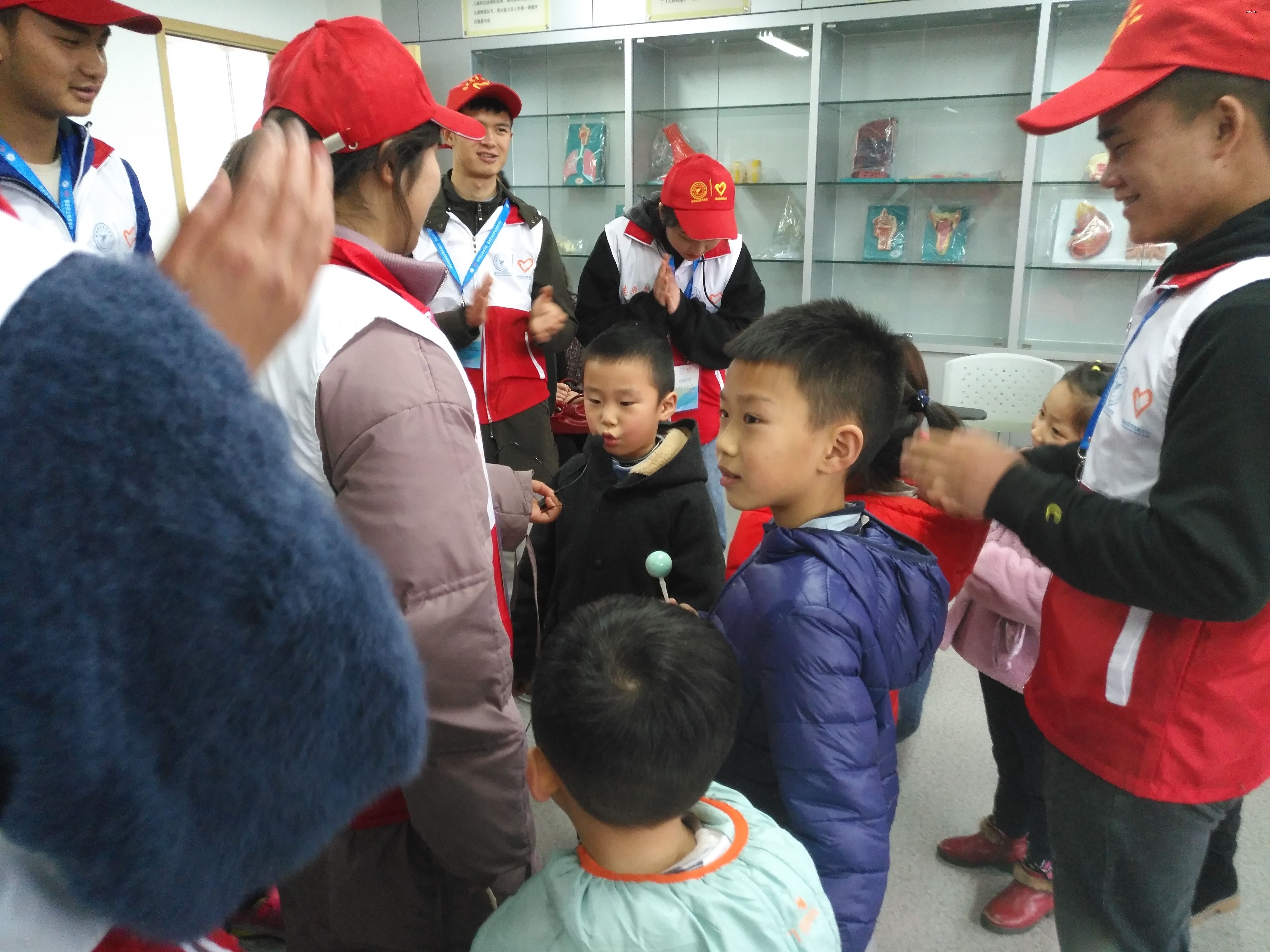 教职工及其子女、志愿者一行40人在党员教师李明蓉的带领下,先参观人体生命科学馆二期,李老师根据年龄特点、活动形式、主题需要带领志愿者事先重新布置了参观教室。