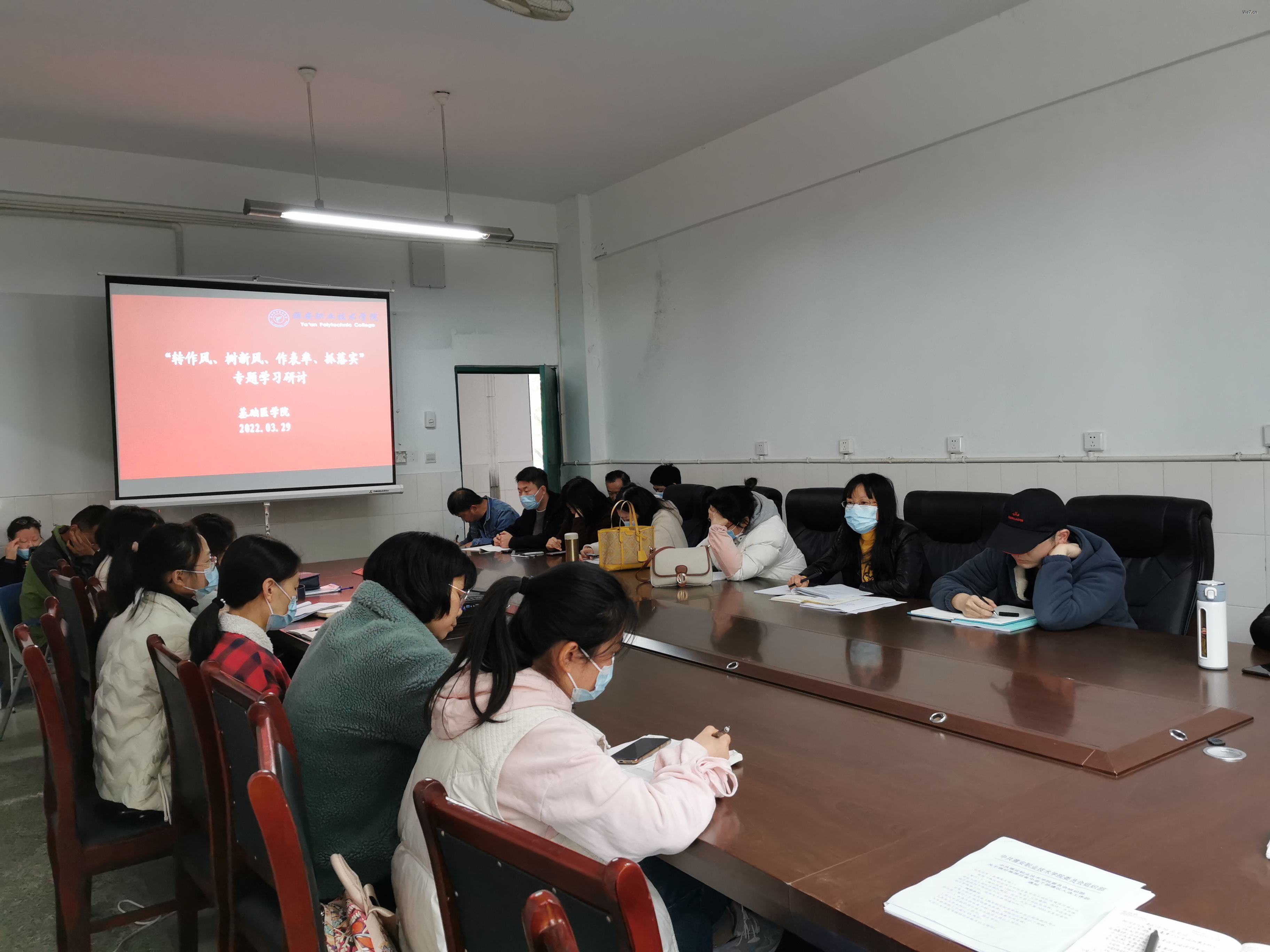 3月29日下午,太阳集团tyc151在青年路D2-6室召开“转作风、树新风、作表率、抓落实”专题学习研讨会,大家结合工作实际开展专题讨论。会议由薛正毅经理主持,全体教师参加。