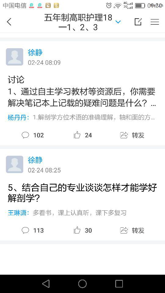 新学期第一周,教研室徐静、朱秉裙、陈慧、李明蓉和廖林梅(外聘)5位教师为全院医卫类及相关医卫类7个专业推送了5门次线上课程,1163人次员工参加线上学习。教师们使用自建课程,或借助学习通示范课程、云课堂等线上资源,依托超星学习通、QQ直播或腾讯课堂等多方平台开展教学活动,形成“导学+自学+答疑+检测”等线上互动教学方式,顺利完成教学工作。同时老师们也很关心同学们的学习反馈,通过电话、QQ群等方式了解员工的需求。同学们表示能遵循老师提前发布的学习步骤、导学案、电子教材、知识点视频讲授、自学课件、作业等资源要求进行自主学习,做读书笔记,用知识树的方式整理出知识点,标注重点、疑难点,完成作业;愿意通过PC端、手机等方式参加线上课堂学习,接受QQ直播或腾讯课堂参加主题讨论,乐意与老师和同学合作探究,解决教材中的疑难问题,或运用知识点解决实际问题。从视频和对话中,师生都能感受到双方对学与教的热情、兴趣和快乐,期待着下一次课有它不同的风格和独特之处。