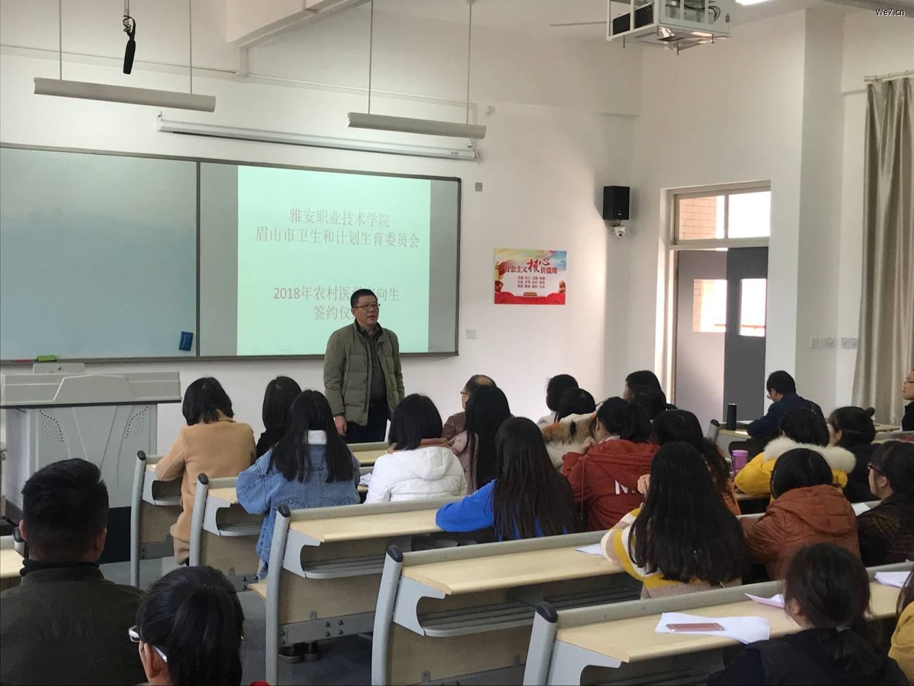 12月3日下午,太阳集团tyc151临床医学专业眉山市农村医学定向培养就业协议签约仪式在经开区实训与服务中心2304举行。眉山市卫计委科长胡燕,人才招聘处处长宋峰,临床医学院经理薛正毅,太阳集团tyc151书记孙玉锦,辅导员严一峰,以及前期报名并通过审核的临床医学专业55名员工和10余位家长参加了签约仪式。