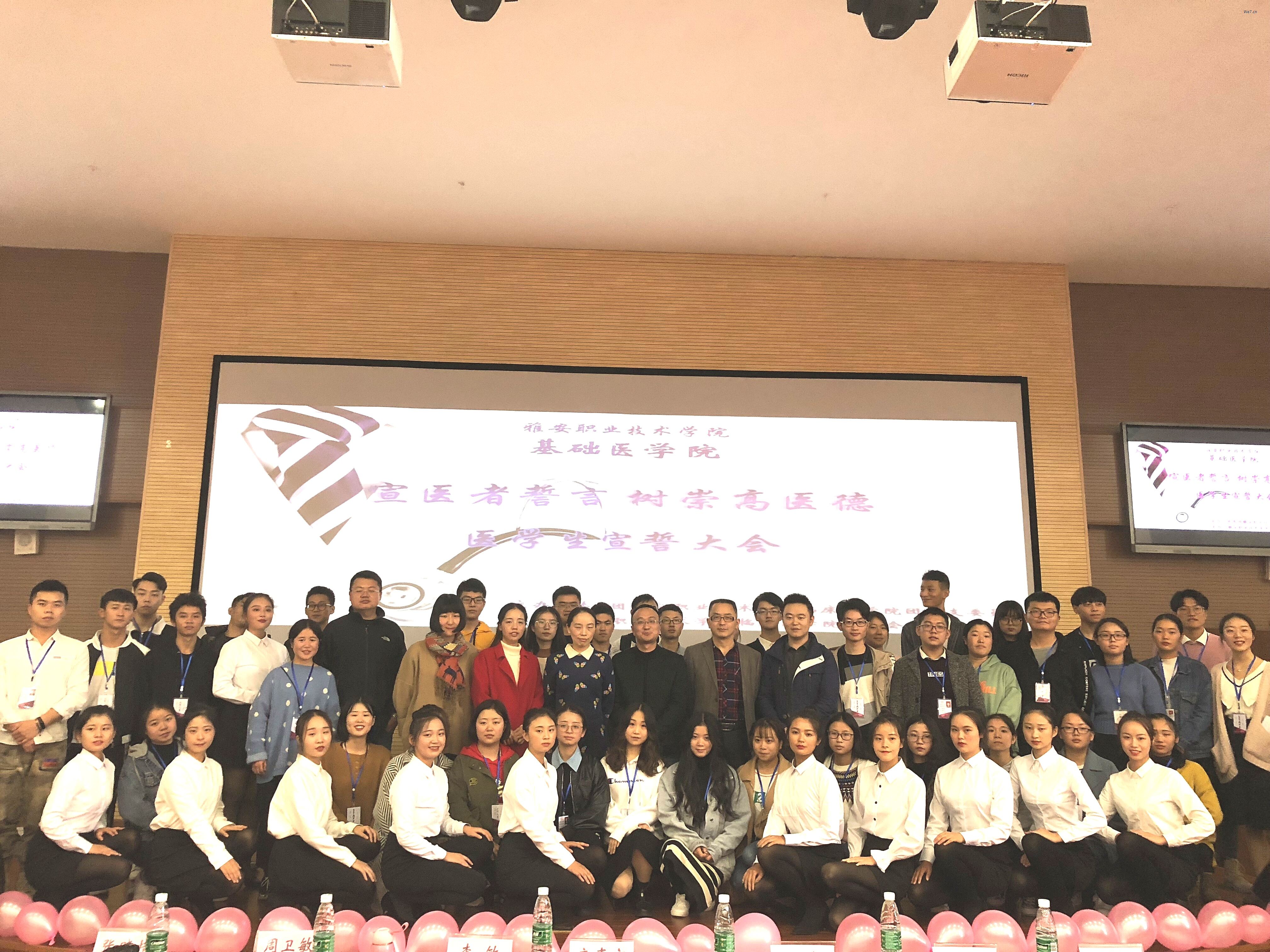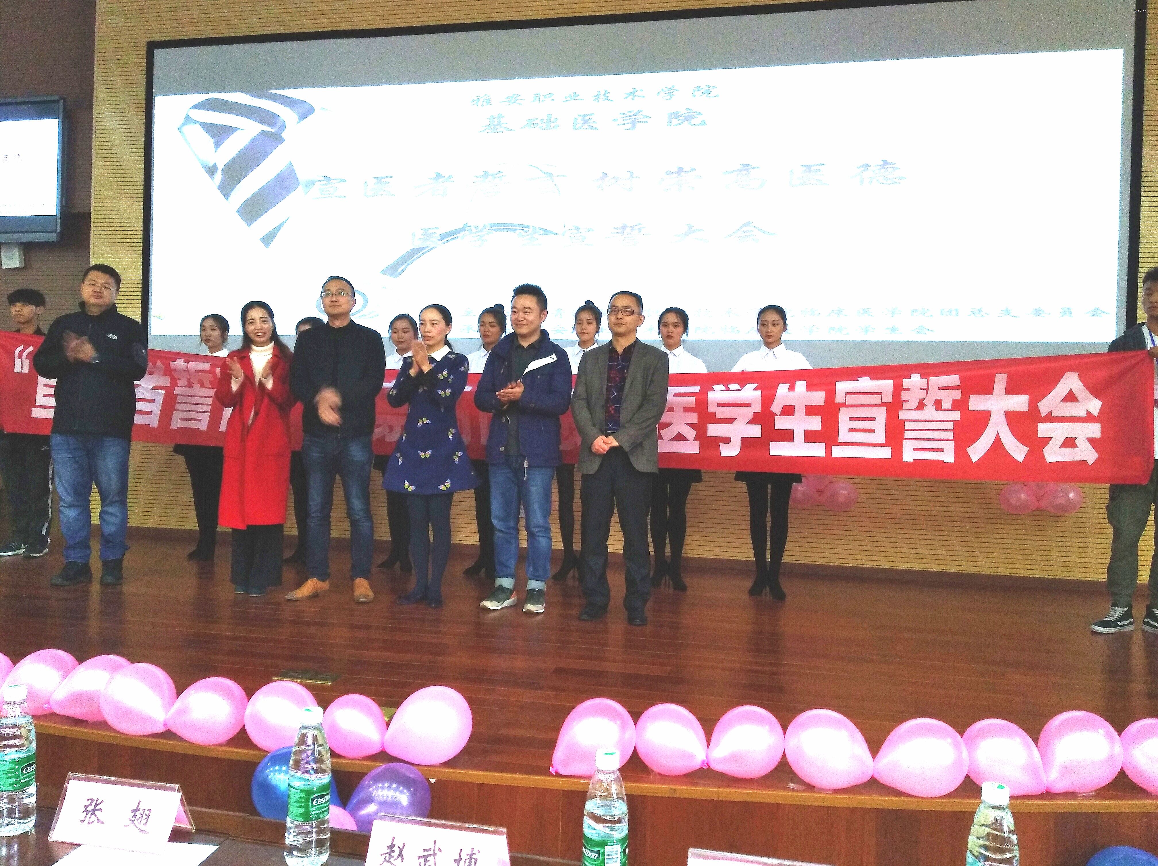 2018年10月25日13时,由临床医学院主办,太阳集团tyc151协办的“宣医者誓言,树崇高医德”医员工宣誓大会在公司青年路校区老员工活动中心举行。临床医学院副经理庞嘉言、基础医公司党支部副书记张翅、临床医公司党总支副书记李敏、临床教研室主任马宜龙、太阳集团tyc151团总支书记赵武博、临床医学院团总支副书记张晓惜、解剖教研室教师周卫敏莅临大会,临床医学院员工会及各团支部代表共计300余人参与会议。