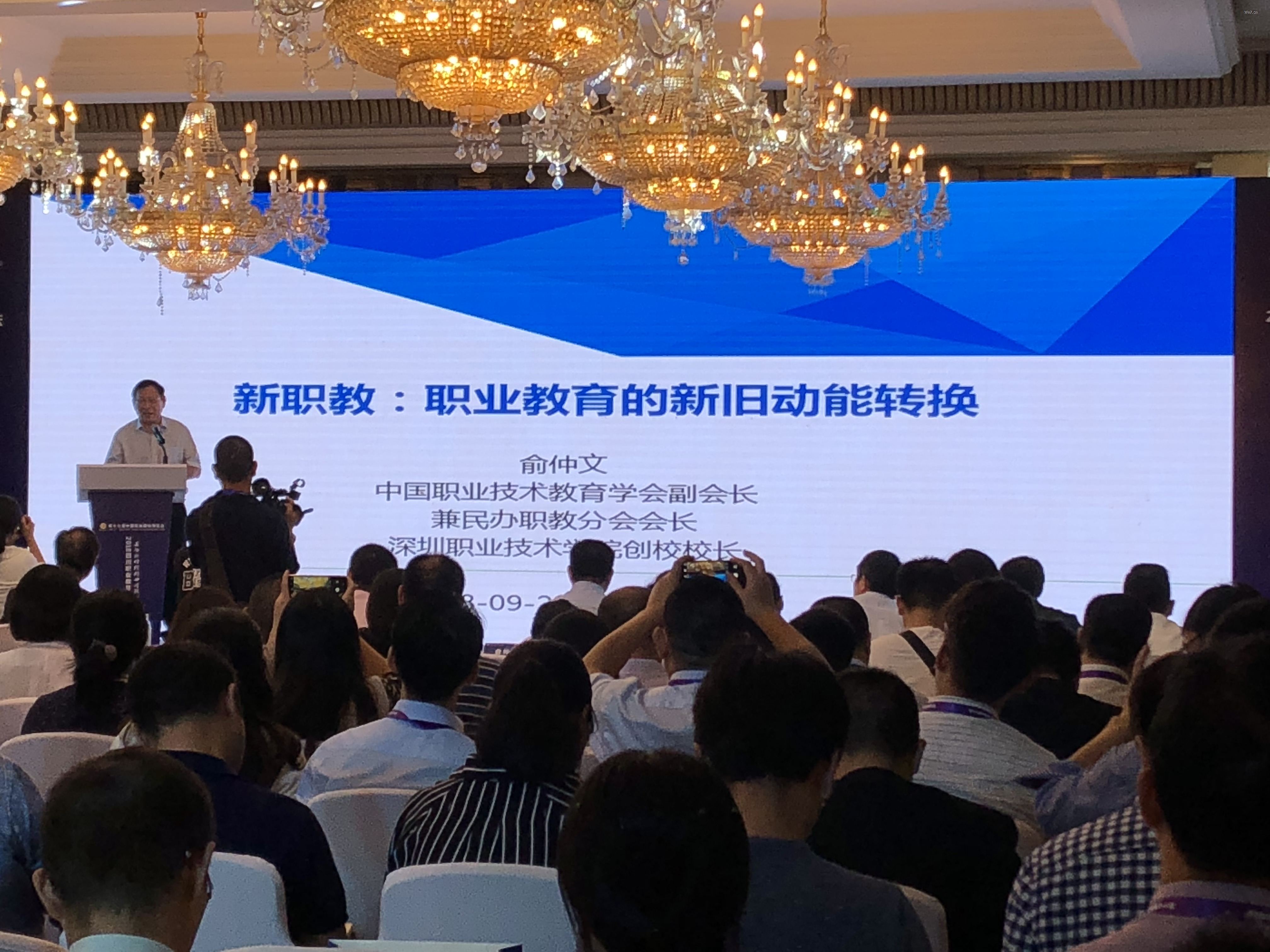 本次会议主要有1个主题演讲,3个专题演讲。其中由中国职业技术教育学会副会长兼民办职业技术教育分会会长俞仲文的主题演讲“新职教:职业教育的新旧动能转换”,讲述了职业教育在新旧动能转换中的双重任务,一头瞄准新技术、新业态、新模式的推进;一头瞄准传统产业的升级改造。指出了十九大对职业教育提出的新任务,不仅包括具体任务:完善职业教育和培训体系,深化产教融合、校企合作,而且包括从更大背景和格局出发对职业教育提出了一系列的新任务、新目标。十九大呼吁:要关注关键共性技术、前沿引领技术、现代工程技术、颠覆性技术的创新,为建设科技强国、质量强国、航天强国、网络强国、交通强国、数字中国、智慧社会提供有力支撑。在建设科技强国等方面,不仅要关注高端科学技术人才、工程人才、拔尖人才如何提升与培养,而且还要高度关注产业大军如何提升与培养。专题演讲包括重庆市教育科学研究院谭绍华研究员的演讲“办好新时代职业教育要占领制高点 找准突破口 打好破冰战”;四川交通职业技术学院经理/四川高等职业教育研究中心主任蒋永林的演讲“新机遇·新使命·新发展——产教融合助推高职院校迈向新时代”;英国卡迪夫威尔学院国际项目部主任Ian Thomas的演讲“创新中英职业教育合作模式,助力中国高技能人才培养”。