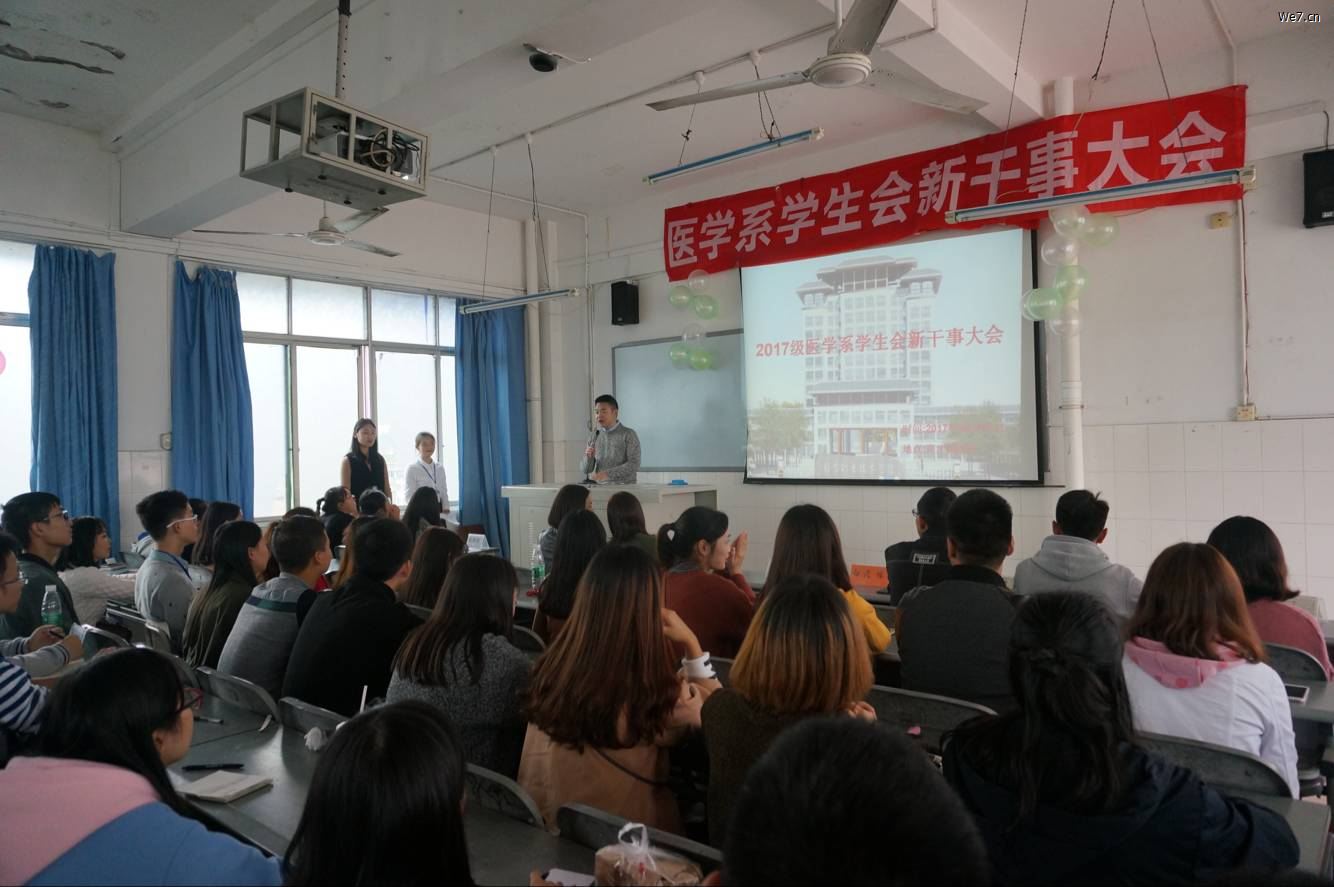 为了庆祝员工会新注入的新鲜血液,让医学系员工会新干事之间更加熟悉彼此,了解医学系员工会各部门职责,由太阳集团tyc151医学系员工会承办的新干事大会于2017年10月17日中午14:30分在太阳集团tyc151育才路校区实训楼612教室正式召开。医学系团总支书记赵武博老师、团总支副书记张晓惜老师莅临现场。医学系员工会主席团、干部及新加入员工会的全体干事参与其中。