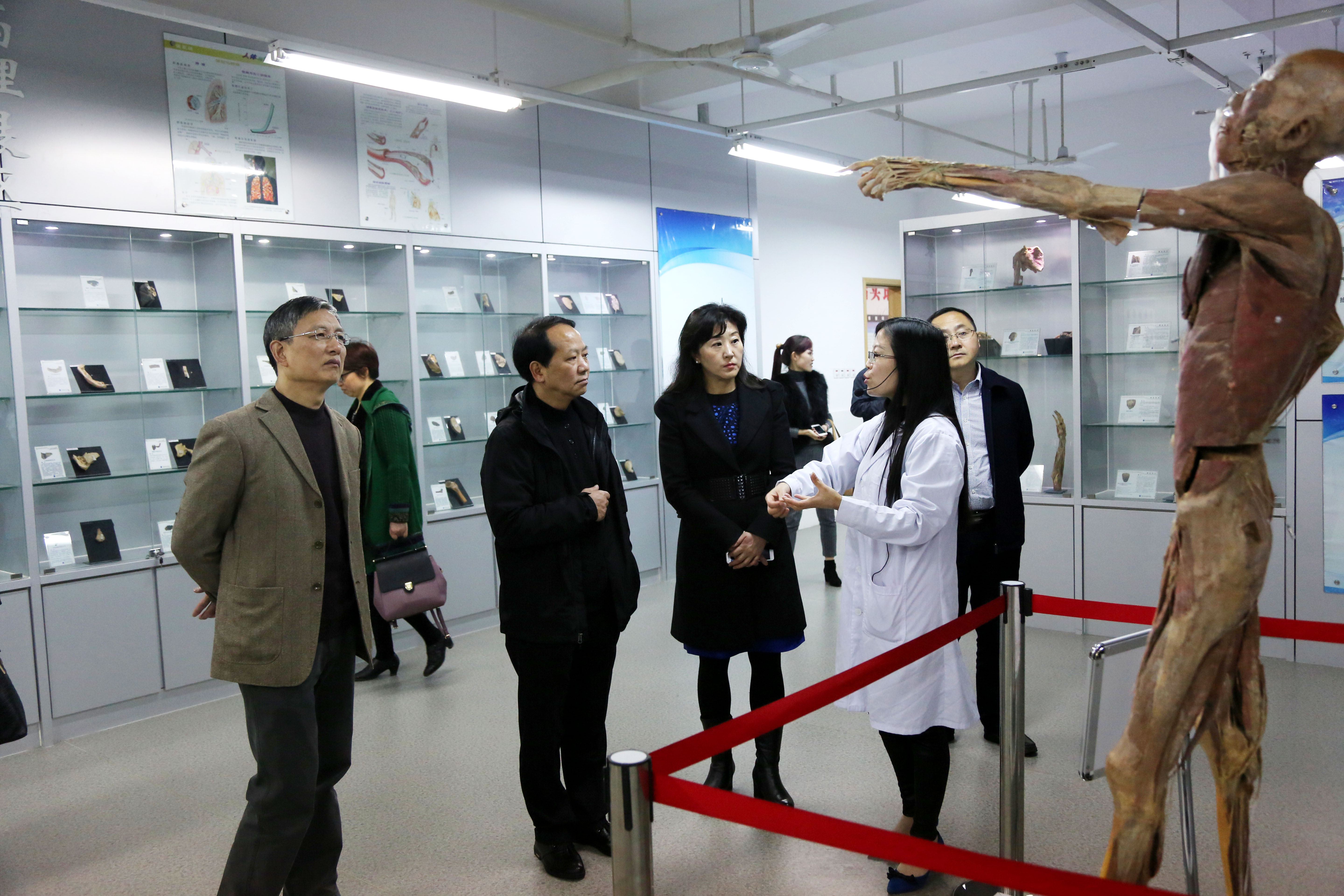 张斌书记一行到达人体生命科学馆,参观了胚胎展区、内脏展区、科普教育展区等八大展区。人体生命科学馆管理员李明蓉向参观者详细介绍了人体生命科学馆的建设背景、展区布局、科普工作开展等情况。