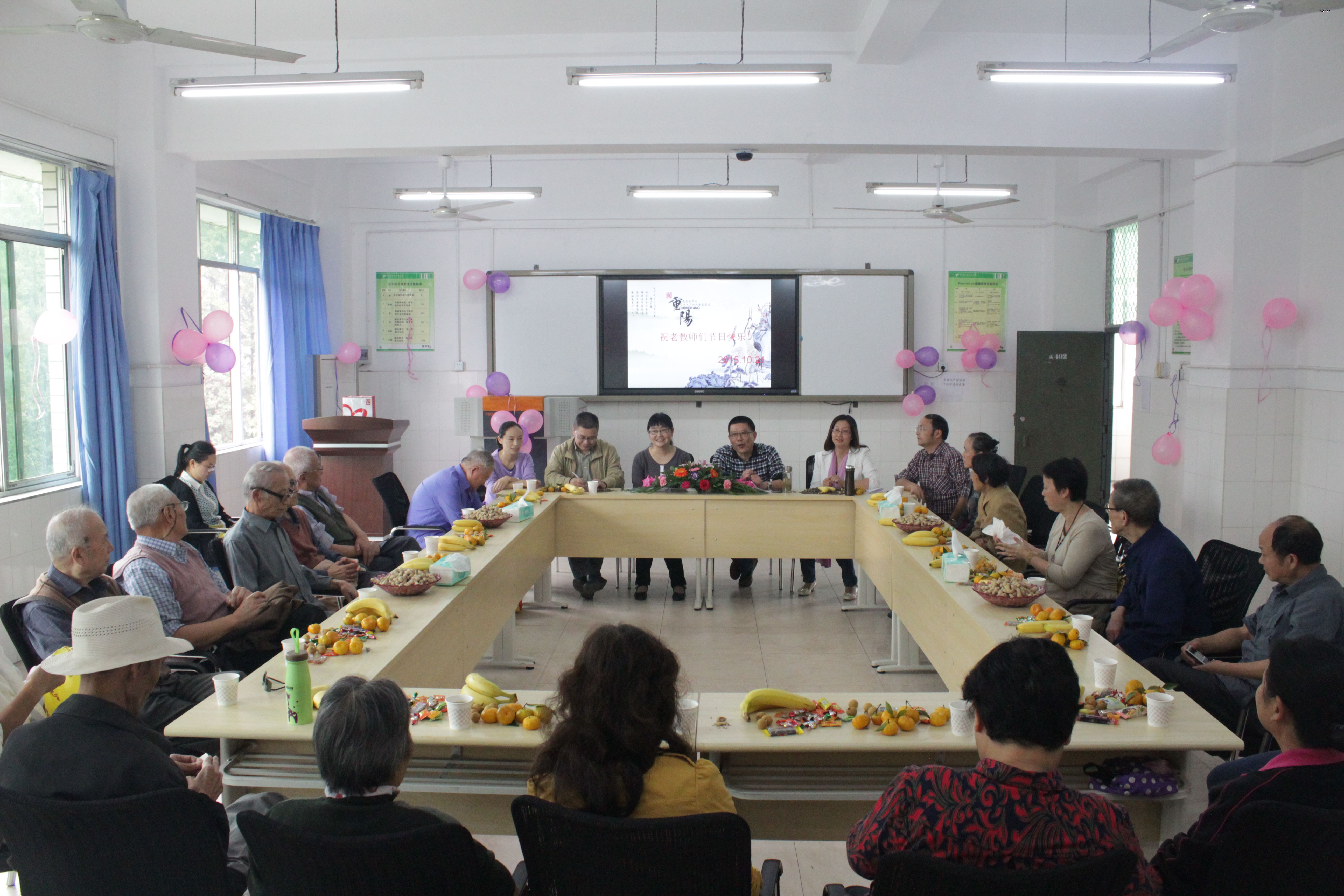 岁岁重阳,今又重阳。10月21日下午,医学系工会小组(含基础医学部)邀请离退休教师欢聚在育才路校区实402,举行“爱洒教育夕阳红,情溢重阳度金秋”座谈会,共度重阳佳节。出席座谈会的有医学系负责人,基础医学部负责人以及18位离退休教师。