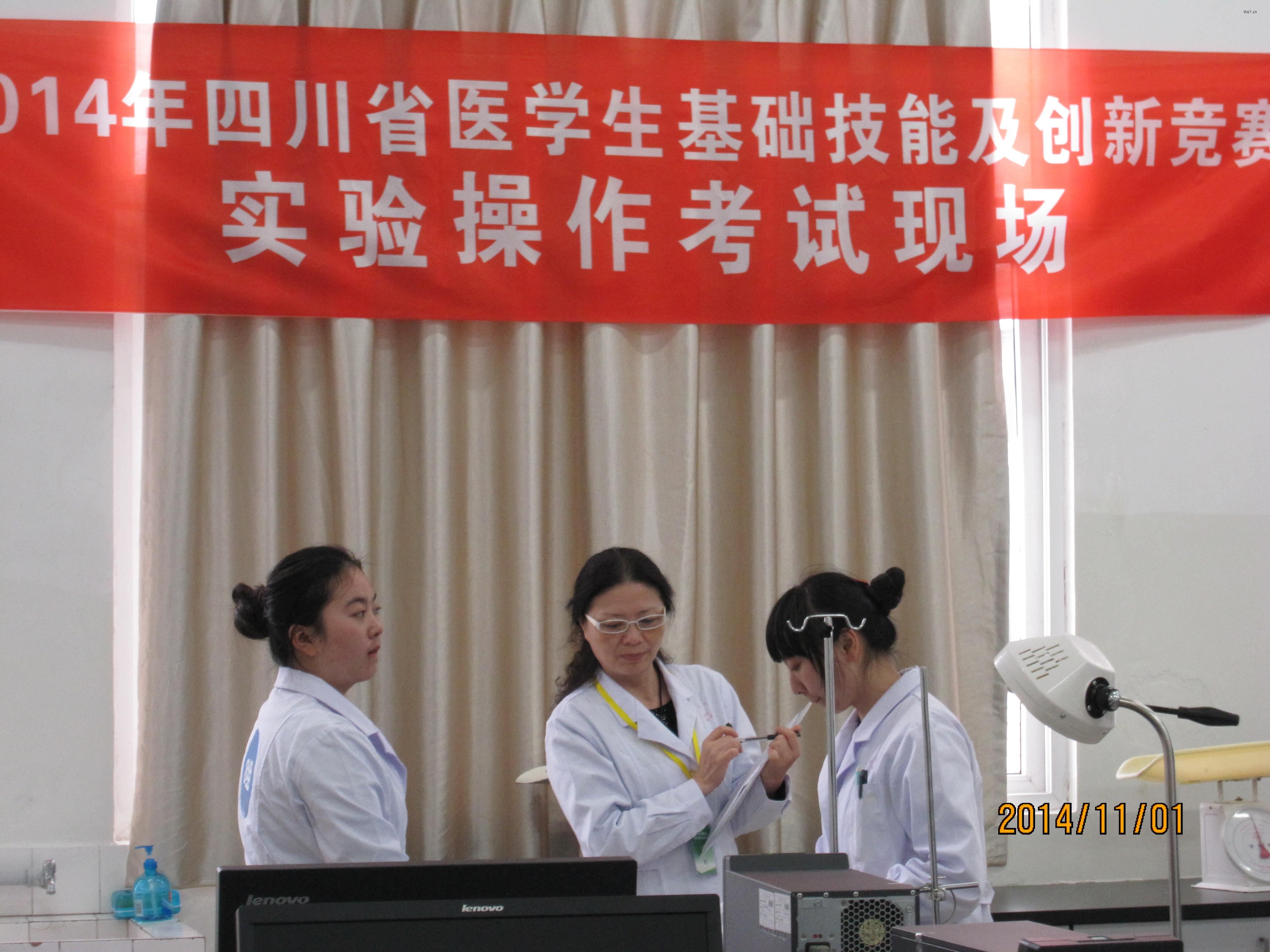 2014年 11月1 - 2日,由四川省教育厅主办、泸州医学院承办的2014年四川省医员工基础技能及创新竞赛在泸州医学院城北校区举行。来自全省10所医学院校的17支参赛队参加了本次竞赛。此次竞赛包括基本理论知识考察、基本技能操作比赛、PPT创新实验成果展示等三个部分,内容涉及人体解剖学、组织学与胚胎学、生理学、生物化学等10大基础医学主干课程的知识,既要考核参赛选手在技能操作的规范性、数据处理的正确性、处理突发事件的应对性、实验结论的严谨性和科学性等方面的能力,也要考核参赛选手在基础医学学习阶段自行设计完成或亲自参与完成科学研究的能力。