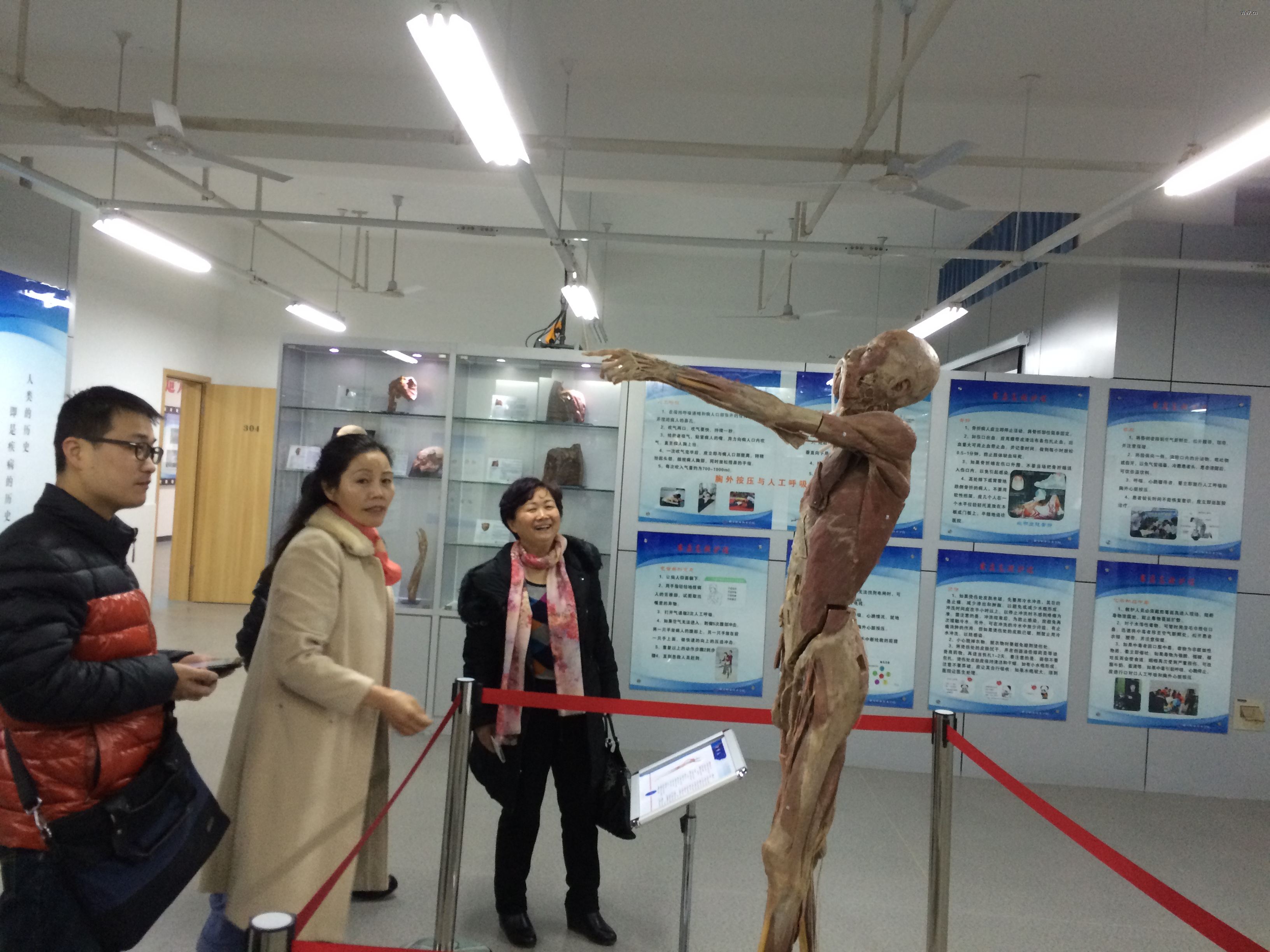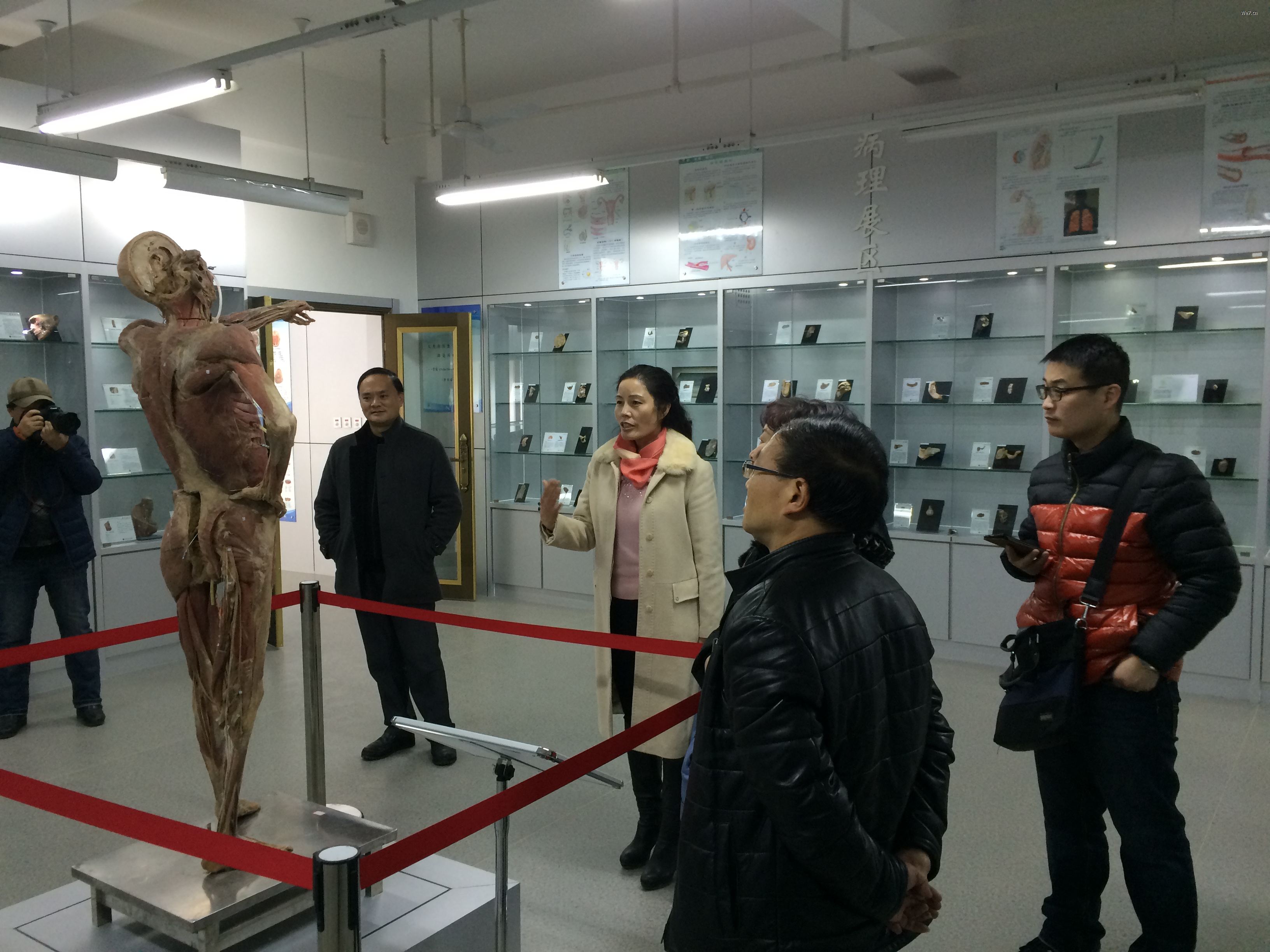 2015年1月20日下午三点,四川省贸易学校董事长周淑琼,带领纪委书记、副董事长,办公室主任等一行7人,来到人体生命科学馆,邓良超老师全程陪同参观考察。周董事长一行对人体生命科学馆的规划布局、装修装饰、标本陈列、科普教育等方面啧啧称奇,赞不绝口,并表示,雅职院是他们学习的榜样。邓老师还对公司在示范建设期间,狠抓内涵建设、团队建设、提升学院的办学实力等方面的情况,向周董事长一行作了介绍。并表示,人体生命科学馆的一项重要功能就是服务社会,培养民众探索科学的兴趣,提升科学素养,丰富健康保健知识。因此,欢迎社会各界人士前来参观考察。