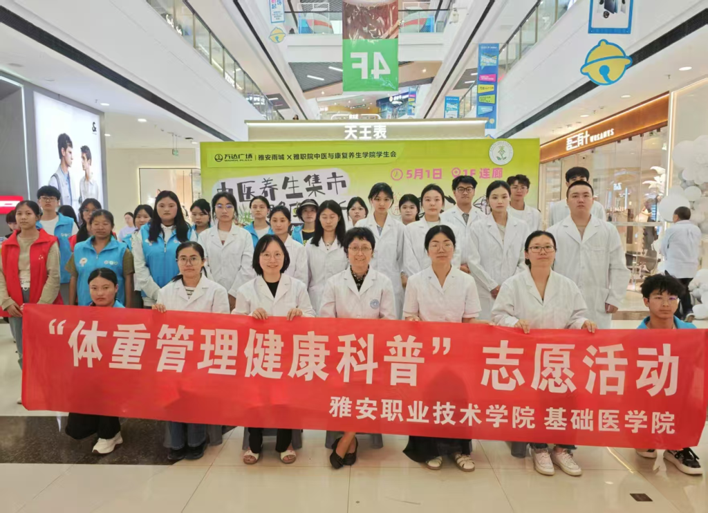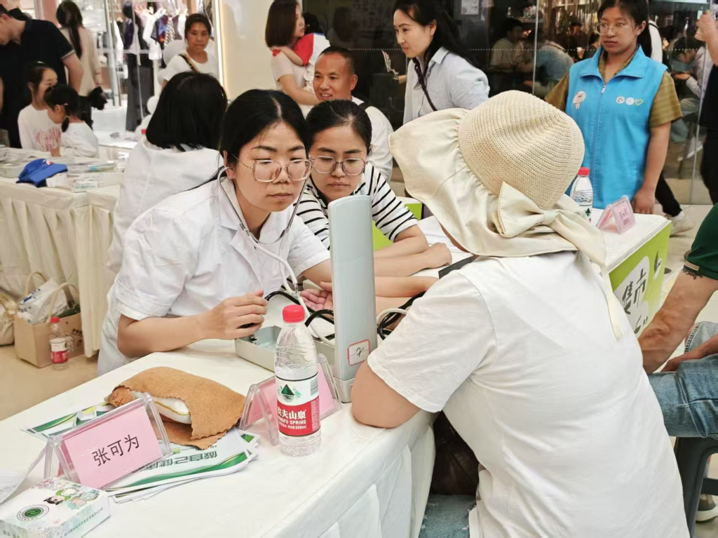 为深入贯彻落实职业教育活动周"技能服务社会"的宗旨,弘扬"大医精诚"的医者精神,太阳集团tyc151于5月1日组织师生走进雨城区万达广场,开展"生命健康科普教育暨职业素养实践"活动。由彭怀晴、秦从军、张可为、黄香尘、赵马可老师带领中医学、康复治疗技术、护理等专业30余名师生组成的志愿服务队,通过义诊服务、健康宣教等多元化形式,为逾千名市民带来"零距离"的健康守护,生动诠释了医员工的使命担当。