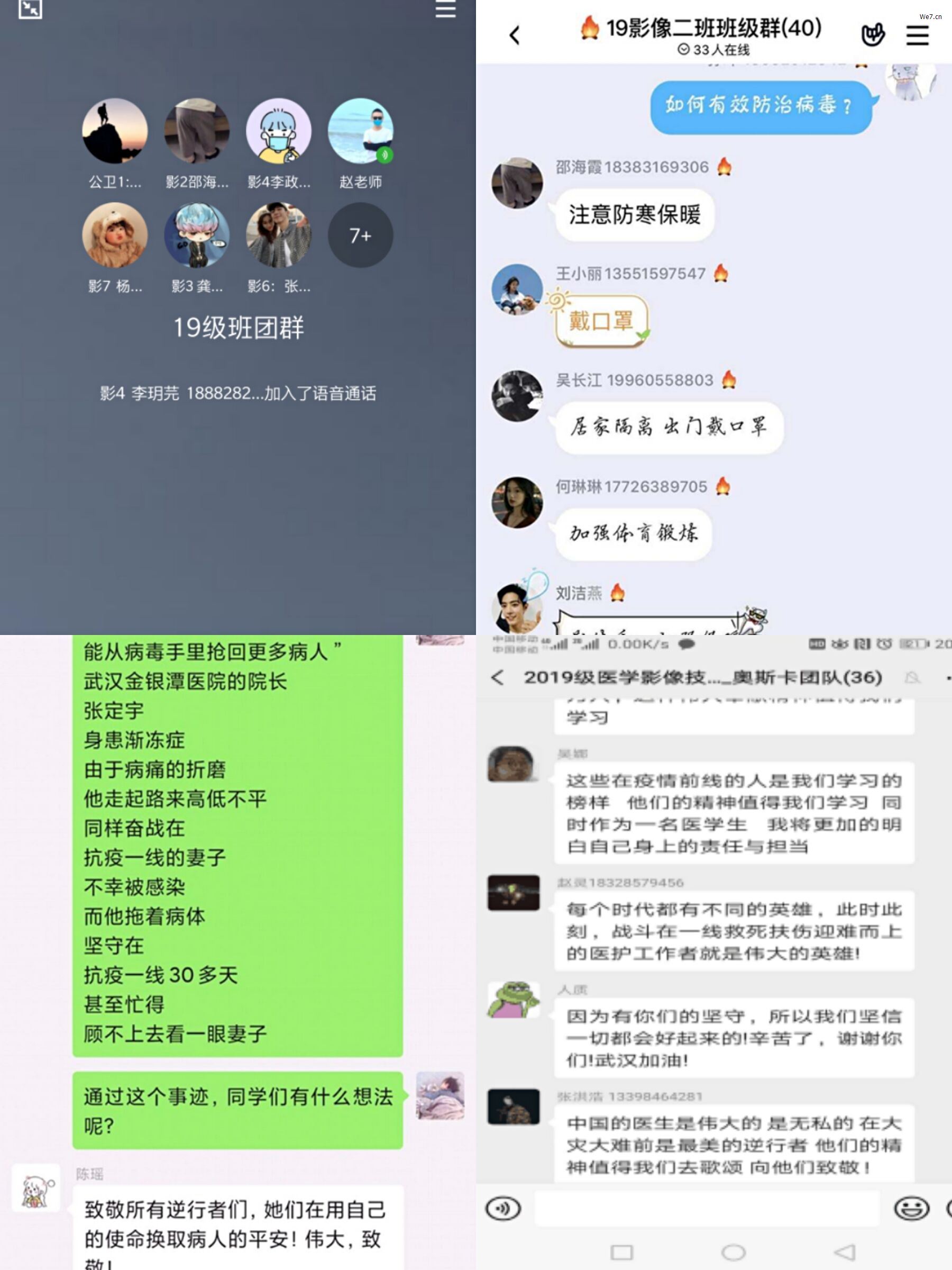 大家经过深入思考和分析当前形势,决定组织同学们通过在线上开展形式多样的班团活动来帮助同学们通过正确渠道迅速了解疫情的相关政策、知识和要求,增强对疫情的防护意识和掌握正确有效的自我防护措施迫在眉睫。